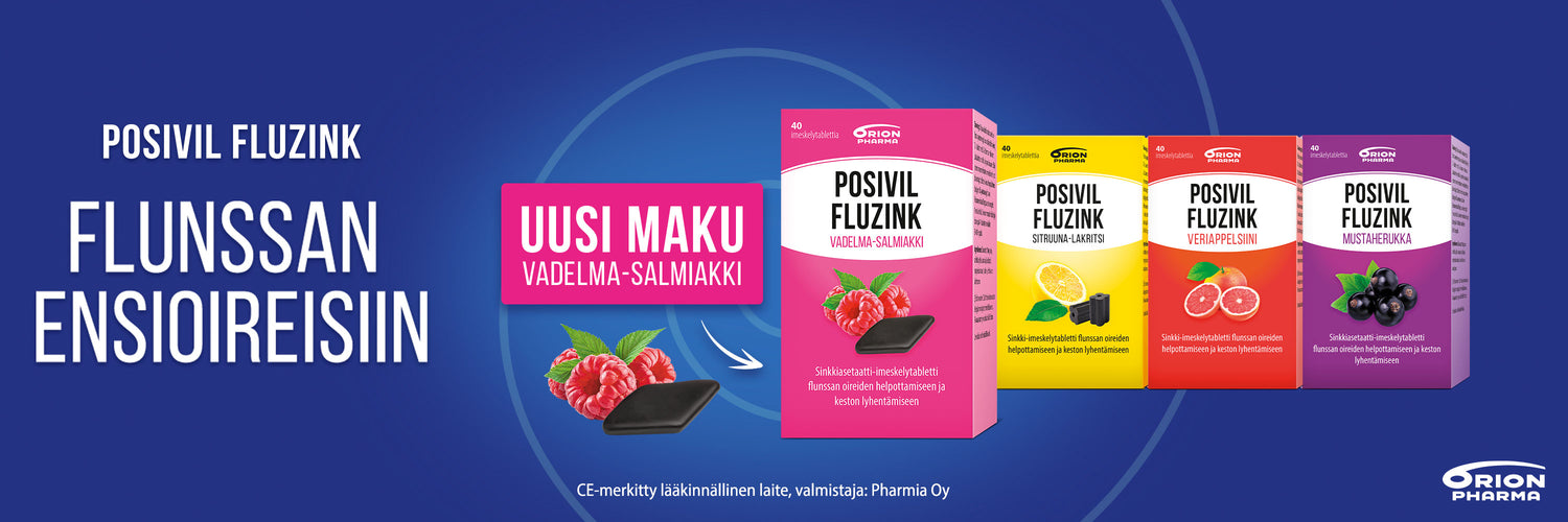 Posivil FluZink Vadelma-Salmiakki 40 tabl -sinkkiasetaattia sisältävät imeskelytabletit