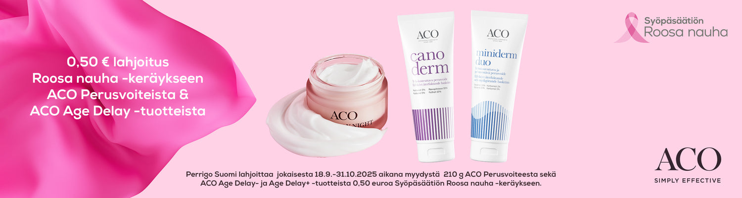 Ruotsalainen apteekkikosmetiikkasarja ACO tarjoaa laadukkaita tuotteita kaikenikäisille ja erilaisille ihotyypeille. Kaikki ACO tuotteet sopivat myös herkälle iholle.