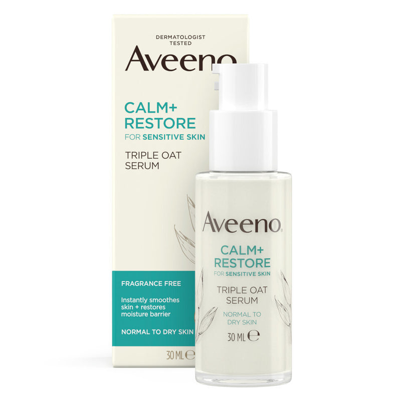 Aveeno Calm + Restore Triple Oat Serum on rauhoittava ja vahvistava seerumi herkälle iholle. Prebioottista kaurayhdistettä ja reunuspäivänkakkaraa sisältävä seerumi on koostumukseltaan ultrakevyt. Seerumi rauhoittaa ihoa välittömästi ja vahvistaa ihon kosteusmuuria. Ihanteellinen seerumi iholle, joka on ärtynyt, kuiva tai herkkä. Seerumi on kehitetty erityisesti normaalille ja kuivalle iholle.