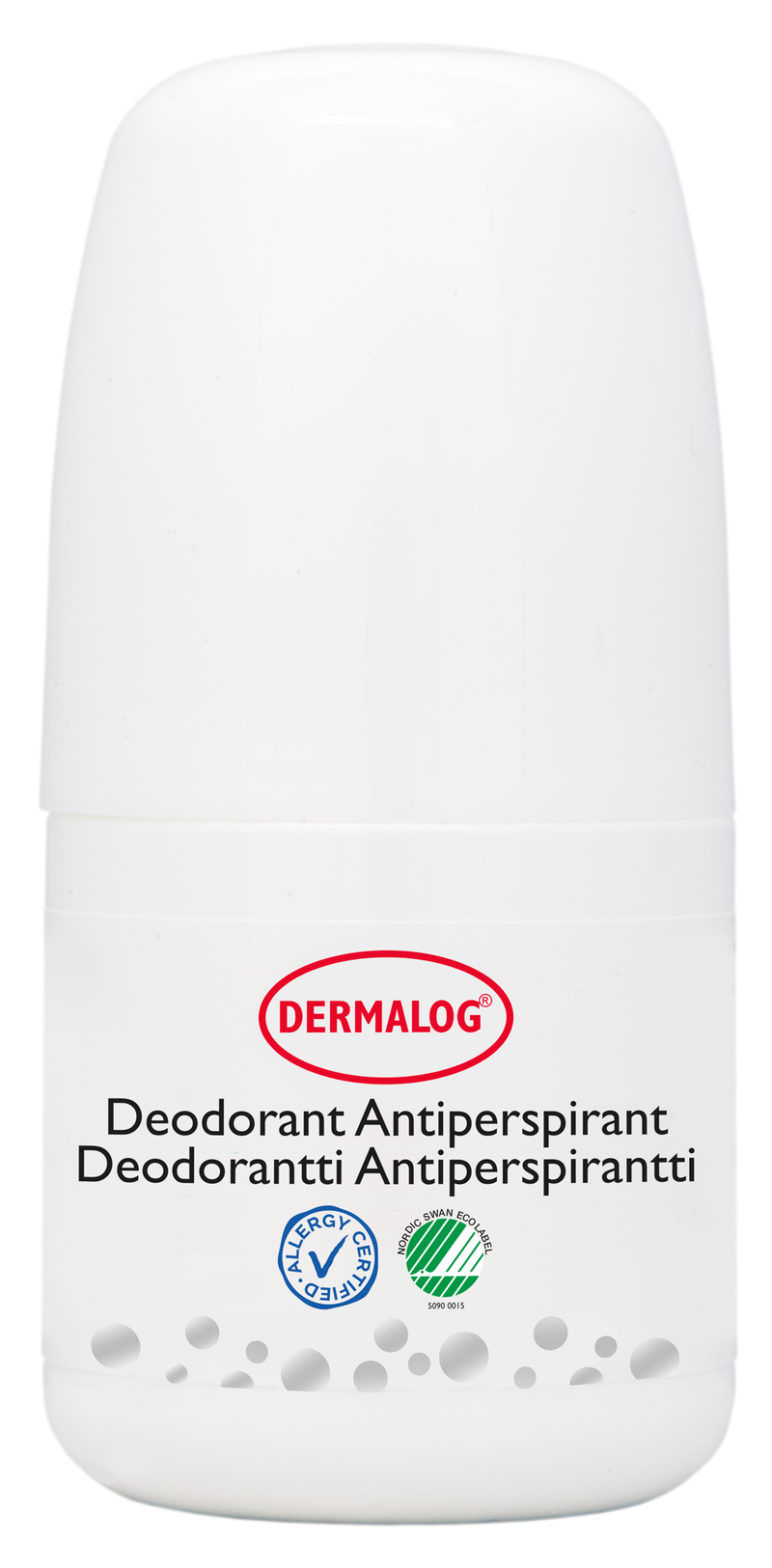 Dermalog Deodorantti Antiperspirantti on joutsenmerkitty mieto roll-on antiperspirantti. Vaikutus kestää vähintään 24 tuntia. Ehkäisee hikoilua. Ei kirvele. Voidaan käyttää karvanpoiston jälkeen.