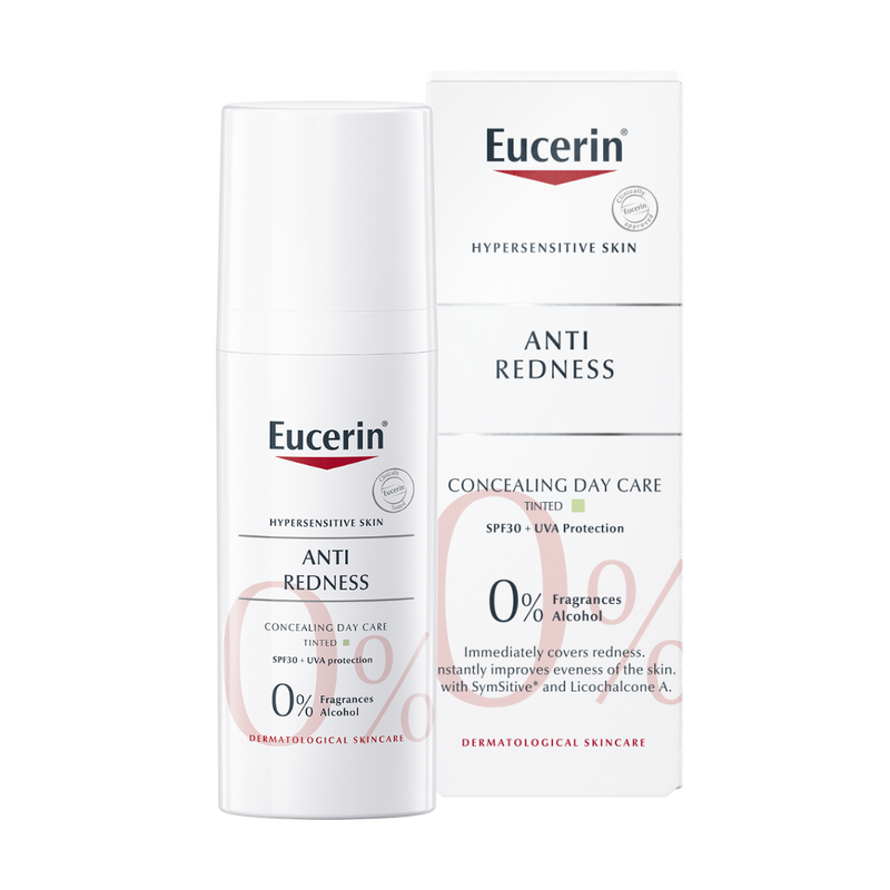 Eucerin AntiREDNESS Concealing Day Care SPF 30 on kehitetty erityisesti erittäin herkälle ja ruusufinniin tai couperosaan taipuvaiselle iholle. Se lievittää ärsytystä ja peittää iholla näkyvän punoituksen. Innovatiivisessa koostumuksessa yhdistyvät kaksi vaikuttavaa ainesosaa, SymSitive® ja Licochalcone A.
