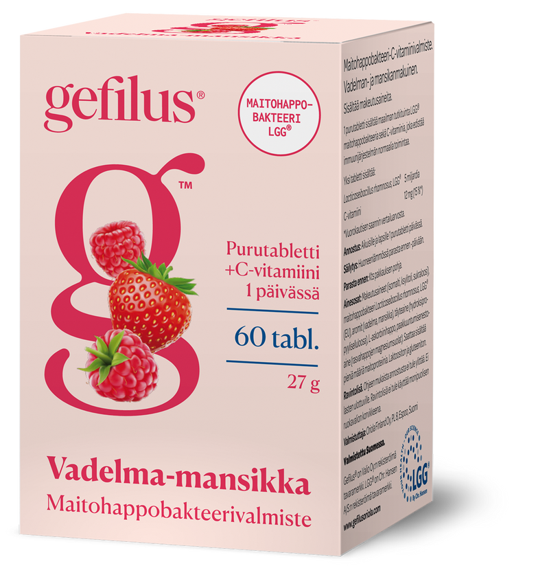 Gefilus vadelma-mansikka purutabletti eri kokoja