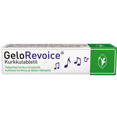 GeloRevoice® kurkkutabletit suojaavat tehokkaasti suun ja nielun limakalvoja ja helpottavat esimerkiksi kurkun ärsytystä, kutiavaa kurkkua ja äänen käheyttä. Niitä käytetään lievittämään mm. äänen käheyttä, kurkun ärsytystä, kutiavaa kurkkua ja limakalvojen kuivumista.