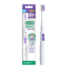 GUM SONIC ORTHO -hammasharja on suunniteltu erityisesti oikomishoidossa oleville, ja se puhdistaa 45 % tehokkaammin kuin tavallinen oikomishammasharja.* Tarkan harjaspään ja hellävaraisten sonisten värinöiden ansiosta harja puhdistaa tehokkaasti myös vaikeapääsyiset alueet ja parantaa näin suuhygieniaa oikomiskojeita käyttäville.