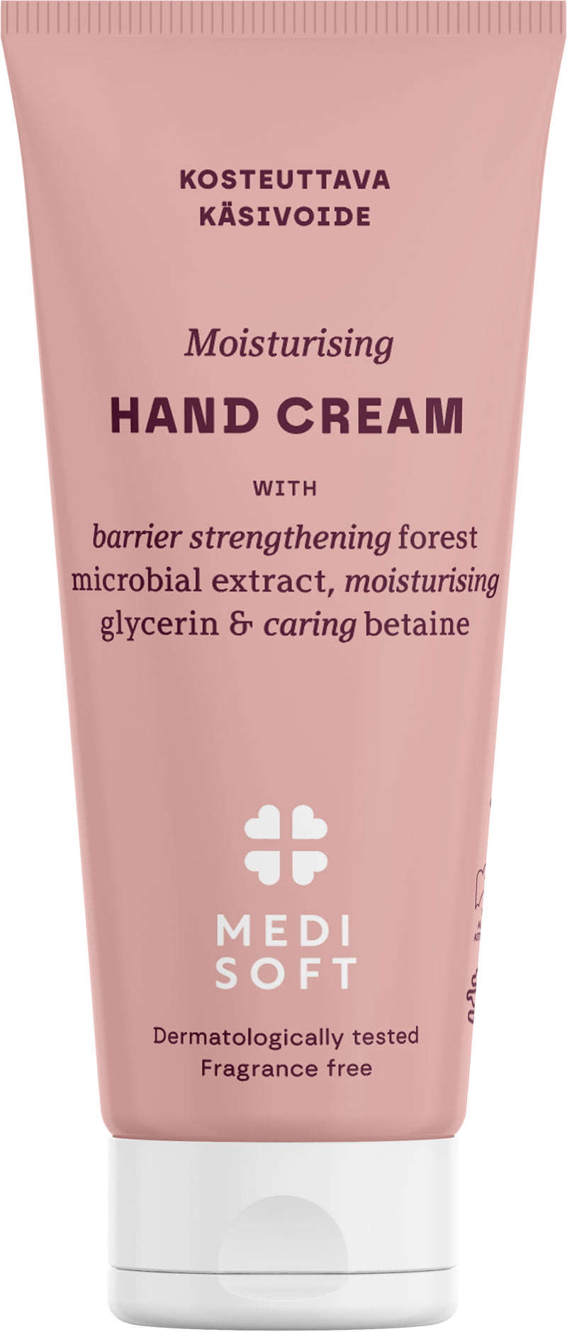 Hoitava käsivoide sisältää metsämikrobiuutetta, joka tukee ja vahvistaa ihon omaa suojakerrosta, glyseroli kosteuttaa tehokkaasti ja betaiini hoitaa ihoa. Nopeasti imeytyvä koostumus jättää ihon sametinpehmeäksi. Suomessa kehitetty ja valmistettu tuote on myös dermatologisesti testattu. Kehitetty yhteistyössä Allergia-, iho- ja astmaliiton kanssa. Hajusteeton.