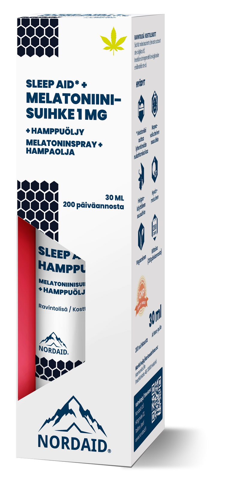 Nordaid Sleep Aid -melatoniinisuihke + hamppuöljy 1 mg 30ml