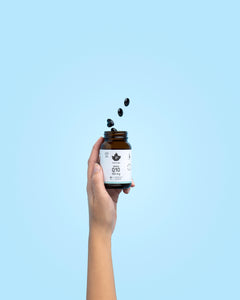 Vahva ubikinoni Q10 ekstra-neitsytoliiviöljyssä, valolta suojaavassa kapselissa.