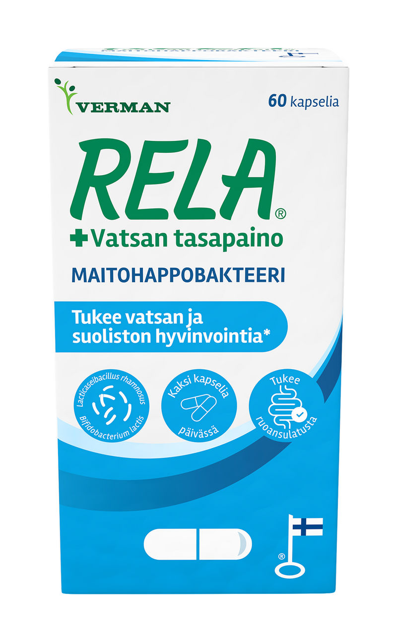 Rela+Vatsan tasapaino 60 kaps - tukee vatsan ja suoliston hyvinvointia