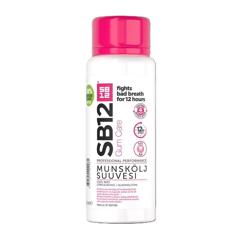 SB12 Gum Care torjuu pahanhajuisen hengityksen syytä sekä vähentää sen uusiutumista, neutraloimalla suussa olevia pahanhajuisia rikkikaasuja. SB12 Gum Caren vaikutus on välitön ja antaa miellyttävän hengityksen 12 tunniksi. Sisältää 0,2 % fluoria, joka vahvistaa hampaita ja auttaa ehkäisemään hampaiden reikiintymistä. SB12 Gum Care:n on kliinisesti todistettu vähentävän plakin muodostumista ensimmäisestä käyttökerrasta lähtien ja sillä on rauhoittava vaikutus. Tuote auttaa myös palauttamaan ja ylläpitämään terveitä ikeniä.
