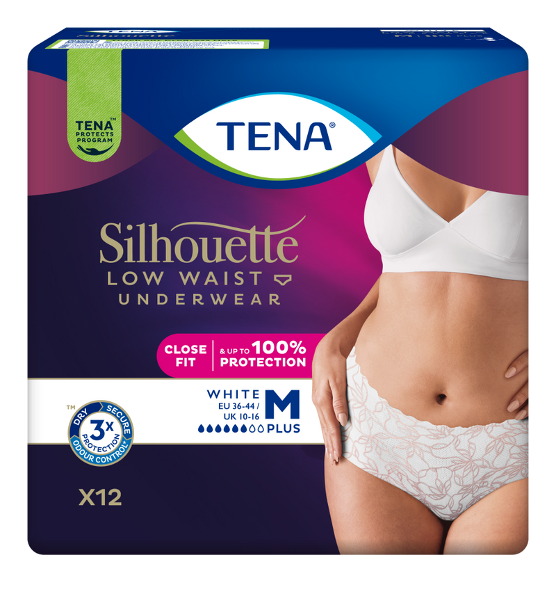 Elegantit ja huomaamattomat suojaavat alushousut naisille. TENA Silhouette Plus suojaavat alushousut matalalla vyötäröllä suojaavat täydellisesti keskivaikealta ja vaikealta virtsankarkailulta. Sopivat erinomaisesti käytettäväksi synnytyksen jälkeen.